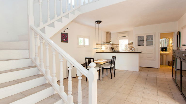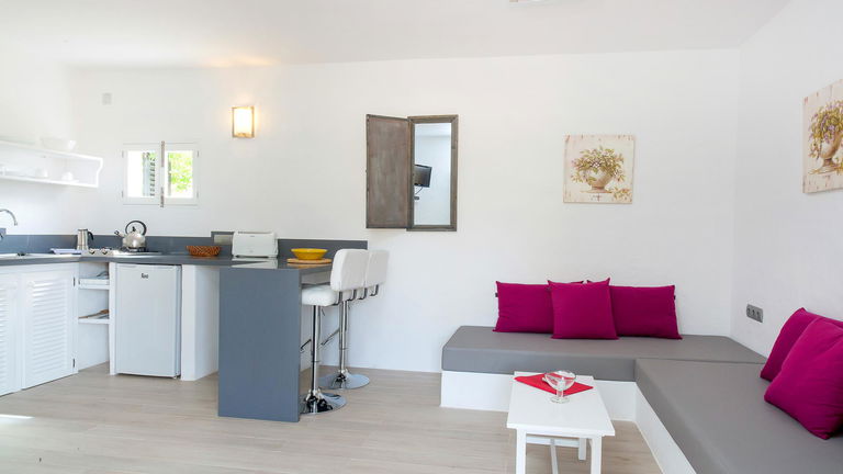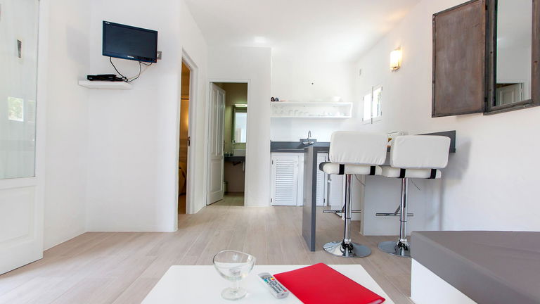 Este apartamento cuenta con zona de estar, utensilios de cocina y patio.