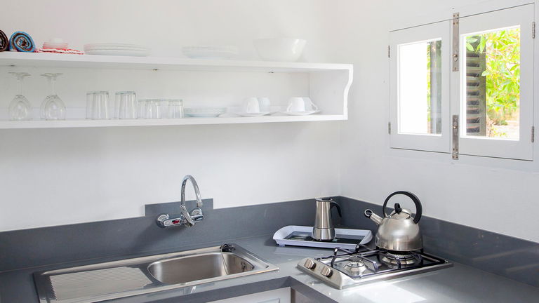 Este bungalow rústico dispone de aire acondicionado, porche privado amueblado, TV de pantalla plana y baño privado con ducha. La zona de cocina está equipada con nevera, tostadora, cafetera, lavavajillas y microondas. Dispone de 2 habitaciones interiores y una exterior con baño externo. Dos habitaciones interiores y dos baños